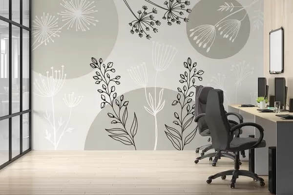 Fotomurales Abstracción con círculos y plantas en tonos verdes Nr. w03483v1
