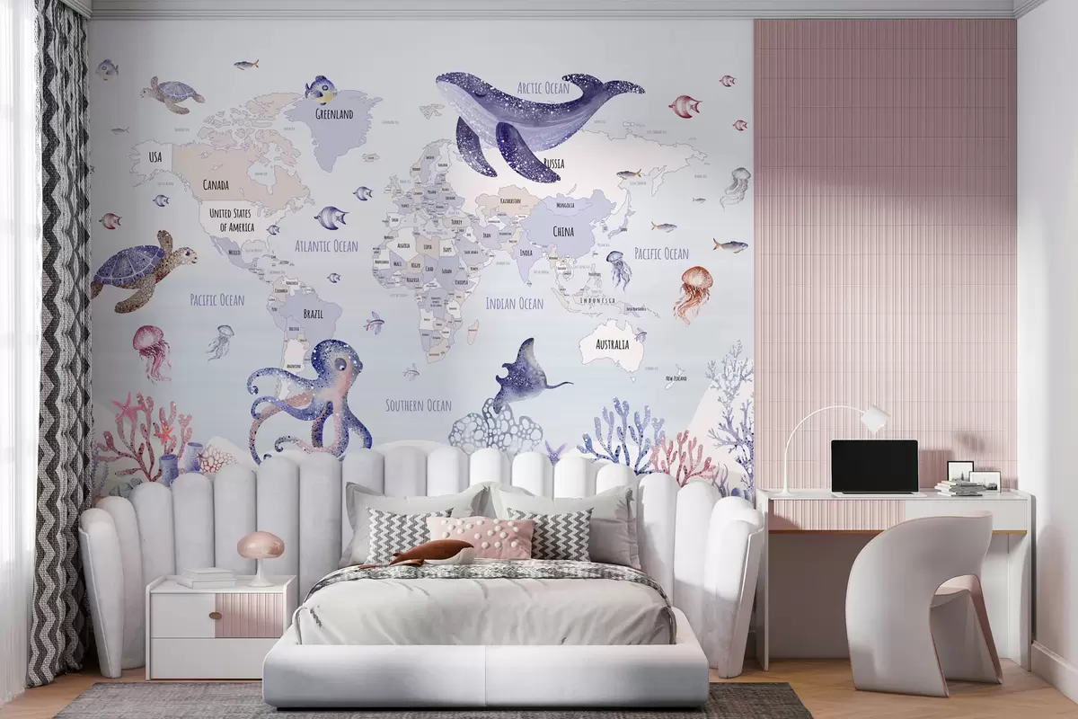 Fotomurales Mundo submarino con mapamundi Nr. w03526v1