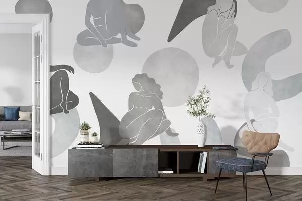 Fotomurales Abstracciones geométricas con siluetas femeninas, estilo boho, colores grises Nr. w03753v5