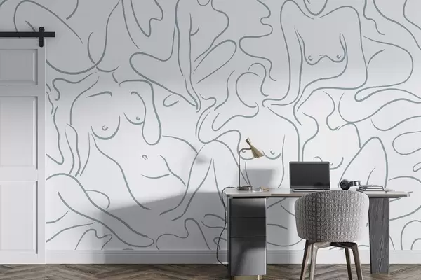 Fotomurales Dibujo lineal siluetas anatómicas, abstracción, color azul Nr. w03755v1