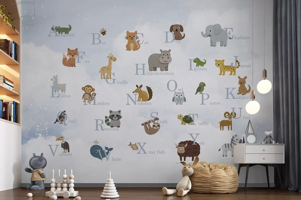 Fotomurales Alfabeto con letras azules sobre fondo de cielo Nr. w03810v1