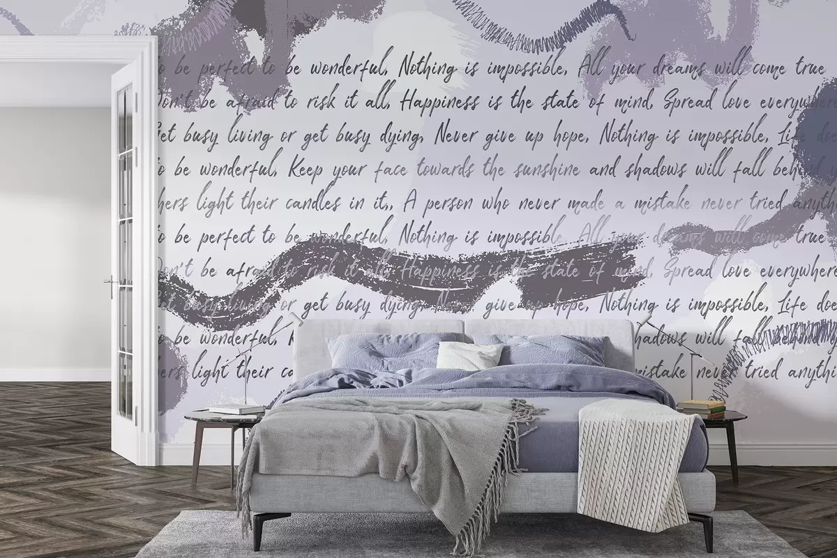 Fotomurales Diseño con citas inspiradoras, abstracción, colores morados Nr. w03909v2