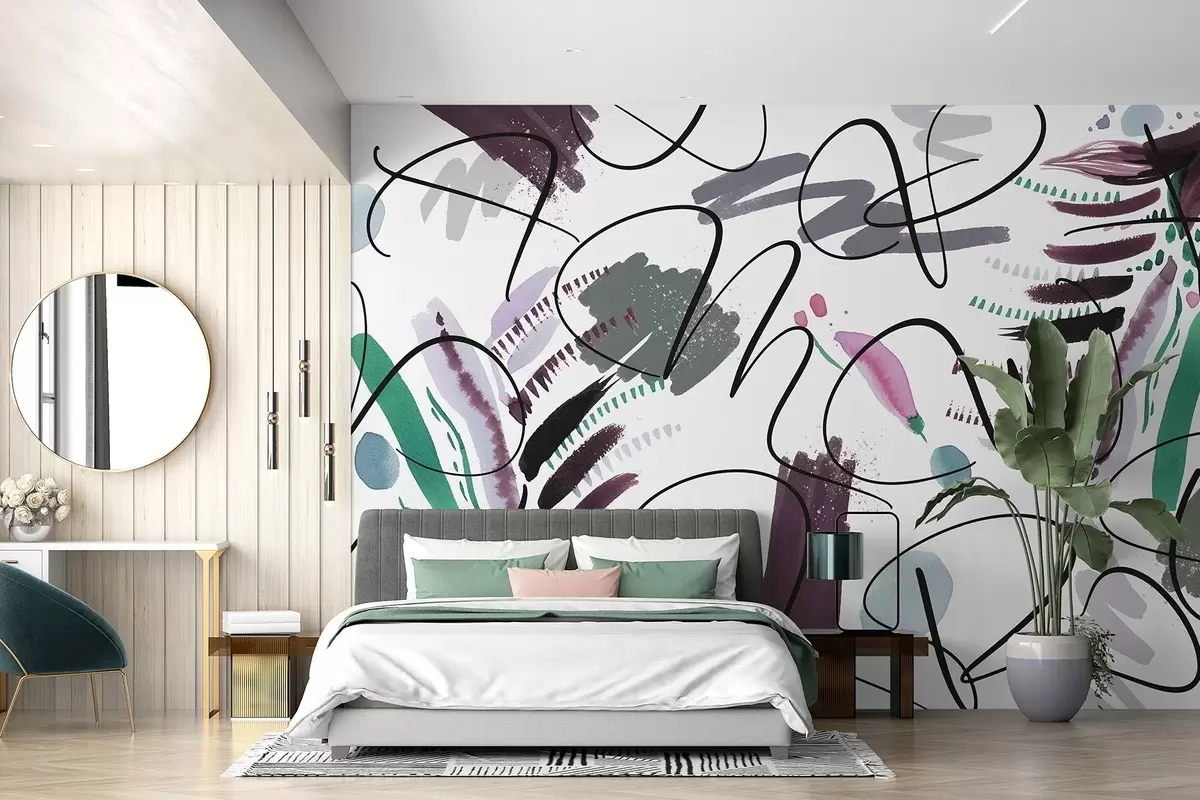 Fotomurales Letras de tinta, caligrafía, pinceladas, colores pastel, abstracción Nr. w03912v1