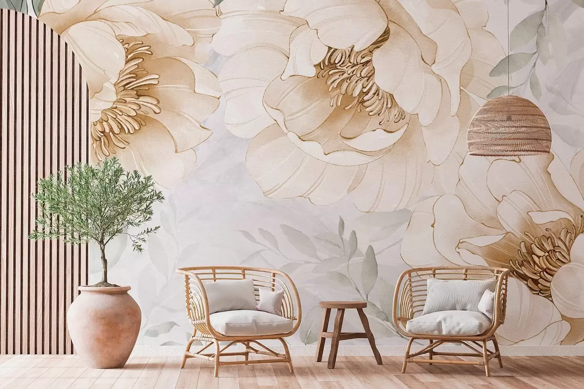 Fotomurales Peonías amarillas imitación acuarela Nr. w03932v1