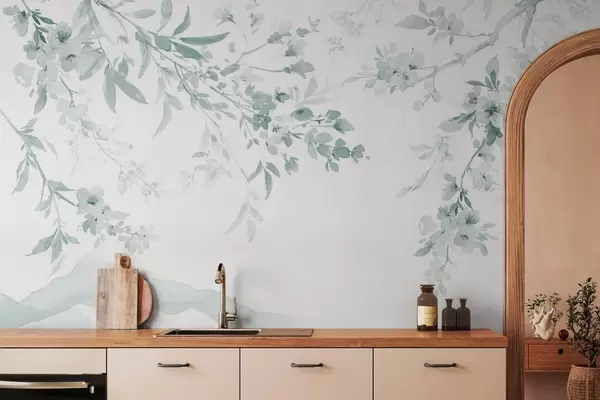 Fotomurales Ramas floridas, imitación de acuarela, tonos verdes Nr. w03935v3