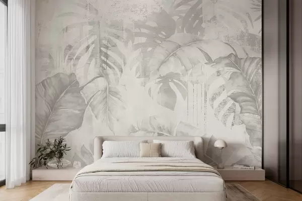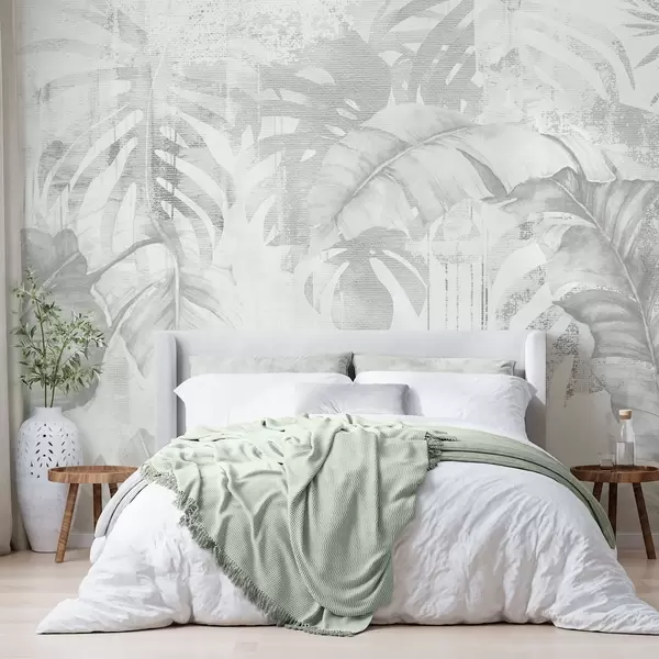 Fotomurales Hojas tropicales en estilo grunge, tonos monocromos Nr. w03956v1