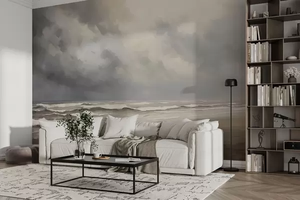Fotomurales Mar bajo la lluvia, tonos grises y beige, composición atmosférica Nr. w03998