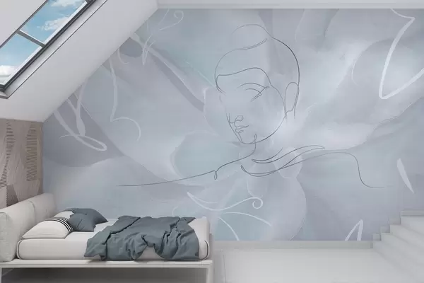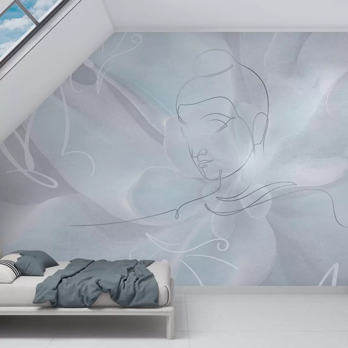 Fotomurales Abstracción floral con dibujo lineal de Buda, colores azules Nr. w04004v1
