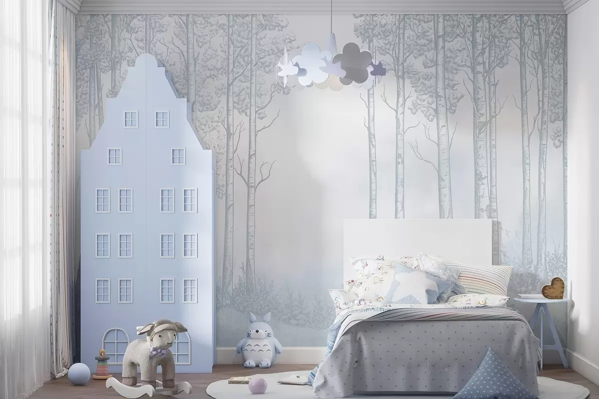 Fotomurales Bosque con abedules, minimalismo, naturaleza, paleta de colores azules Nr. w04009