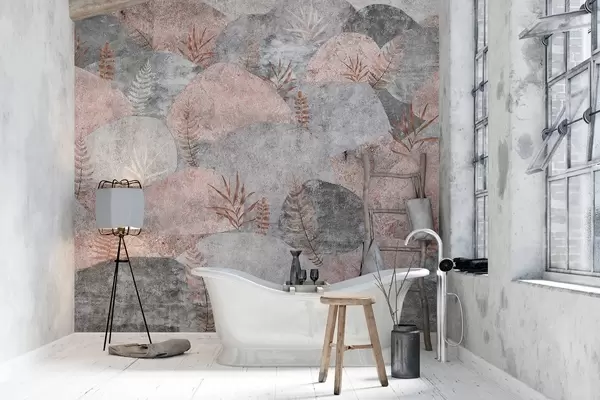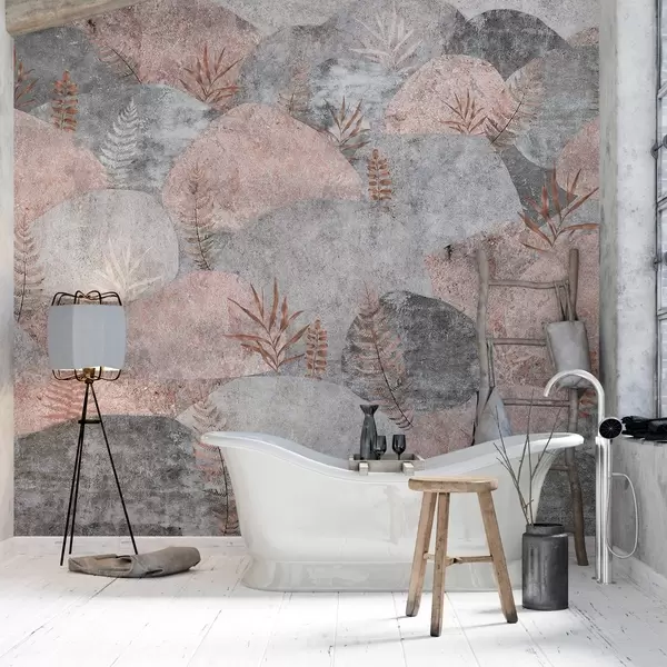 Fotomurales Piedras con plantas, helecho, nórdico, estilo rústico, colores gris y rosa Nr. w04064v1