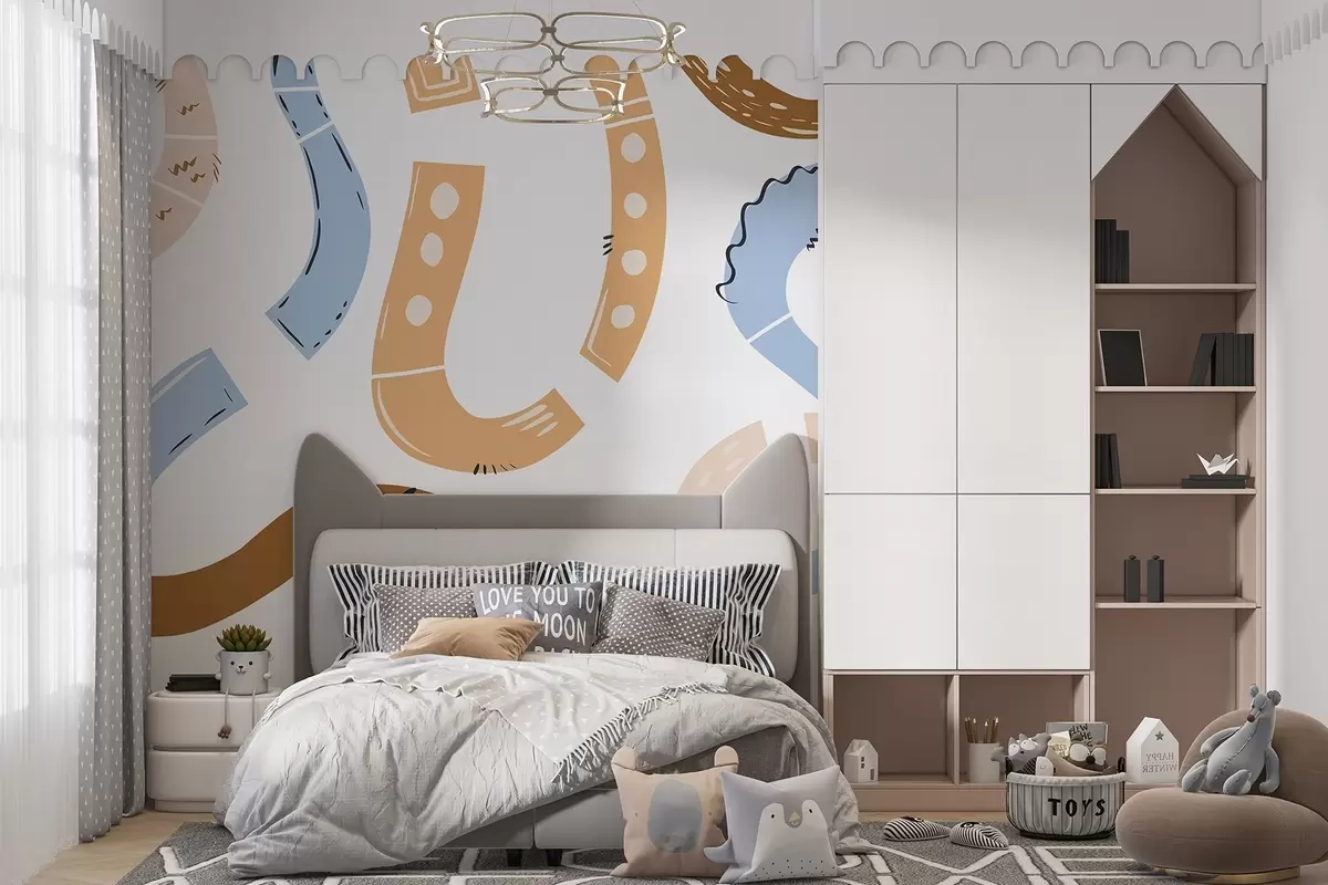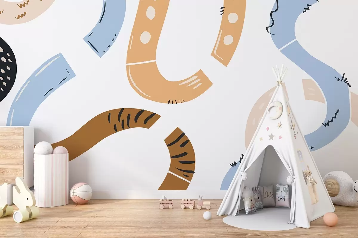 Fotomurales Dibujos abstractos, juveniles, garabatos, marrón, azul, rosa Nr. w04066