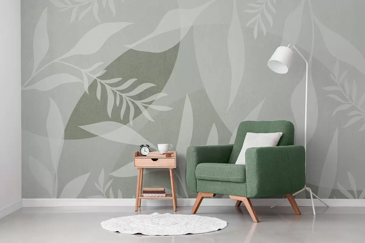 Fotomurales Siluetas de ramitas sobre un fondo de círculos abstractos, tonos verdes Nr. w04270v2