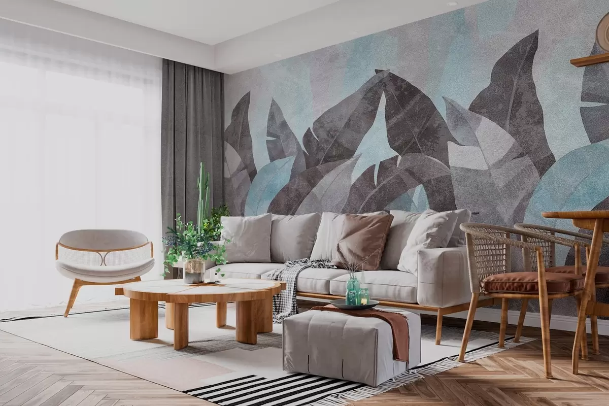 Fotomurales hojas de plátano texturizadas en tonos azules y grises Nr. w04285v2