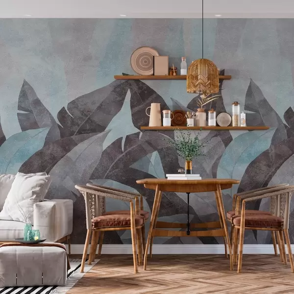 Fotomurales hojas de plátano texturizadas en tonos azules y grises Nr. w04285v2