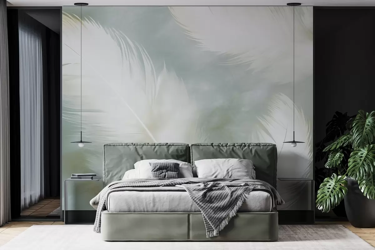 Fotomurales Delicadas plumas blancas sobre un suave fondo menta Nr. w04399