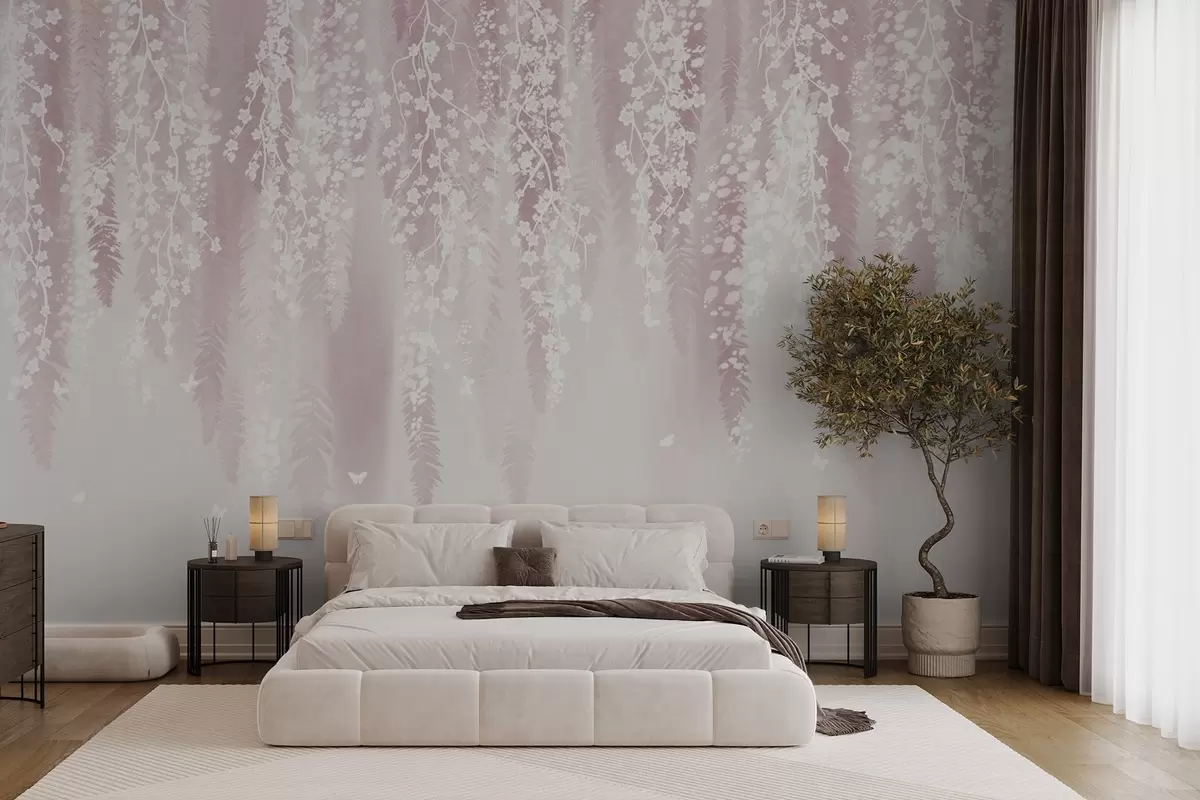 Fotomurales Versión rosa de las ramas con flores blancas Nr. w04417v1