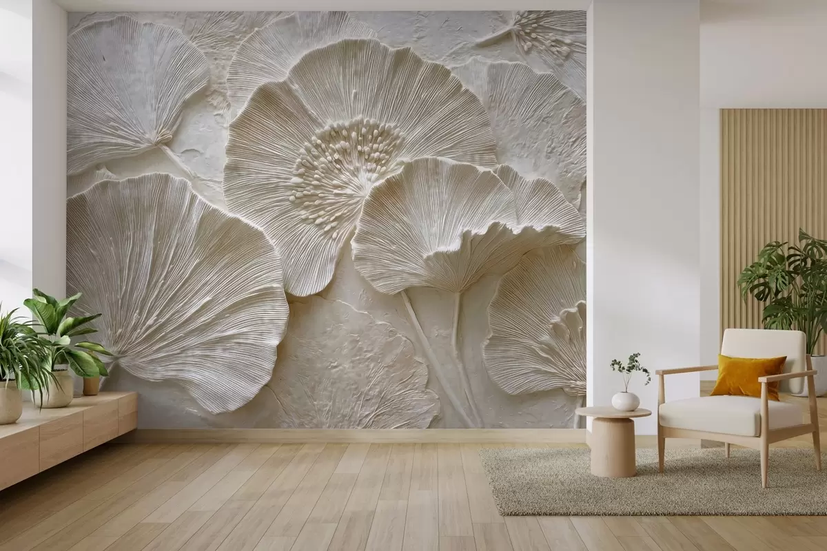 Fotomurales Voluminosas hojas de ginkgo en ligero relieve Nr. w04444