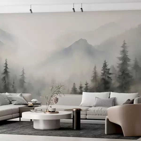 Fotomurales Bosque en la niebla con las montañas como telón de fondo Nr. w04493