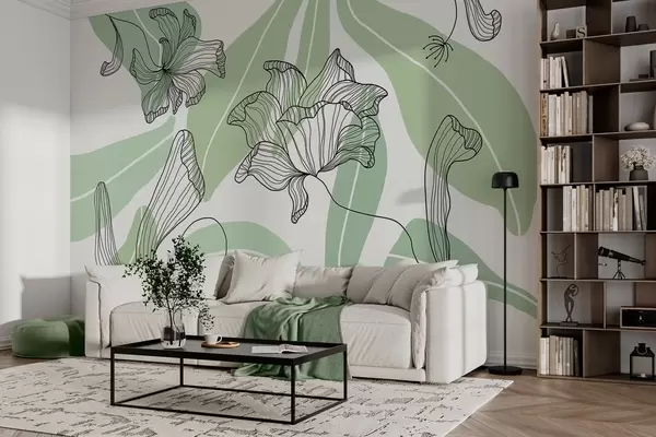 Fotomurales hojas y flores abstractas en tonos verdes Nr. w04499v1