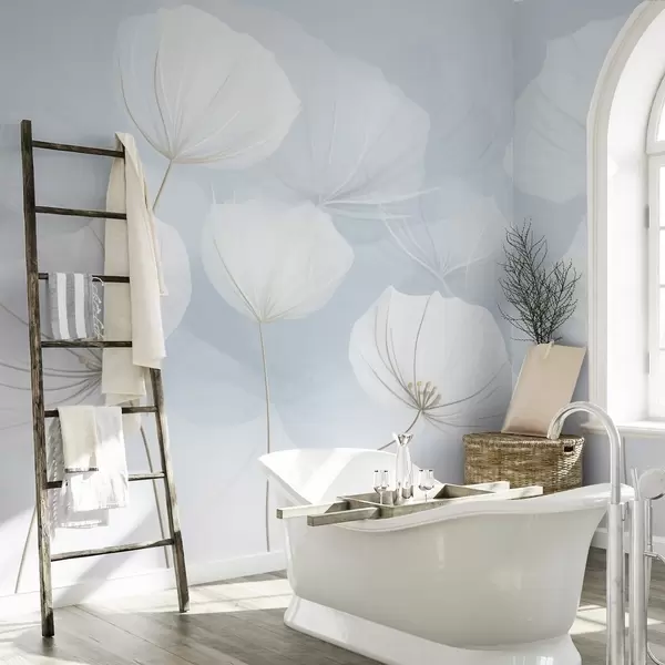 Fotomurales Flores blancas y aireadas sobre fondo azul Nr. w04580