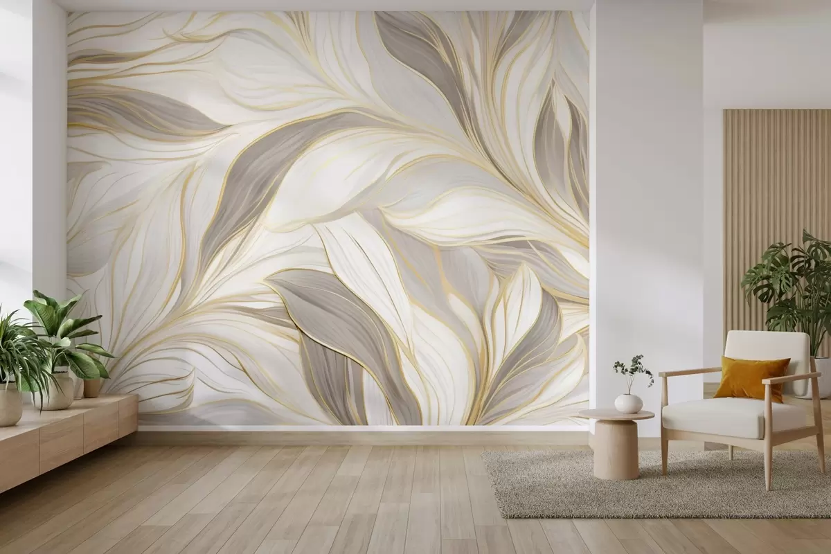 Fotomurales Hojas con curvas suaves en tonos beige claro y grisáceos Nr. w04609
