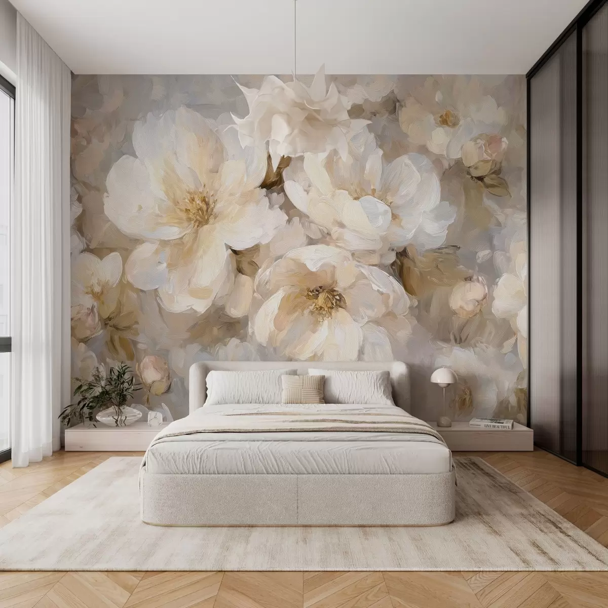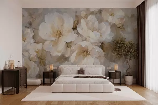 Fotomurales flores grandes en tonos blancos y beige al estilo de la pintura al óleo Nr. w04633