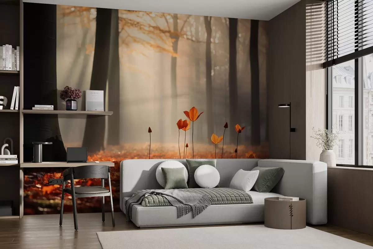 Fotomurales Bosque otoñal con rayos de sol y follaje brillante Nr. w04710