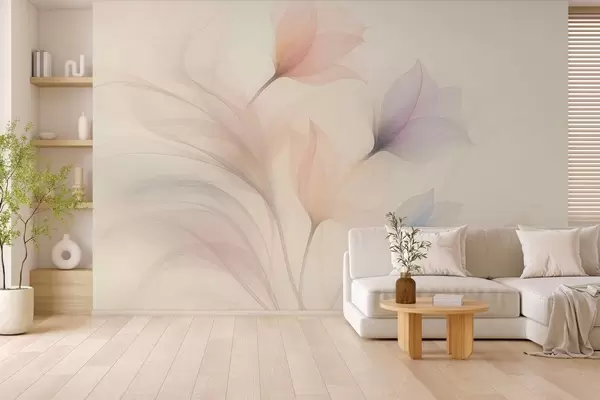 Fotomurales delicados tulipanes semitransparentes sobre fondo beige Nr. w04754