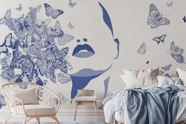 Fotomurales Silueta de un rostro entre mariposas Nr. w04778v1