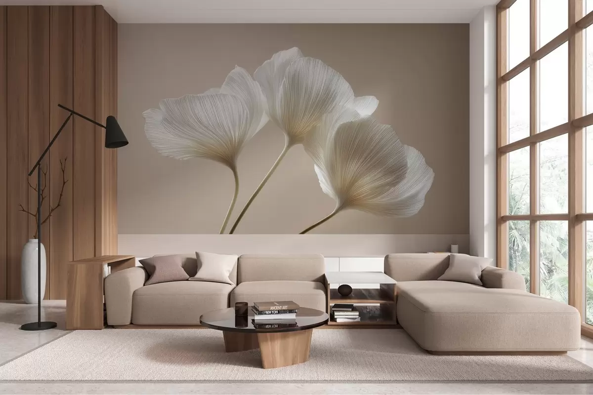 Fotomurales tres delicadas flores sobre un fondo beige Nr. w04810