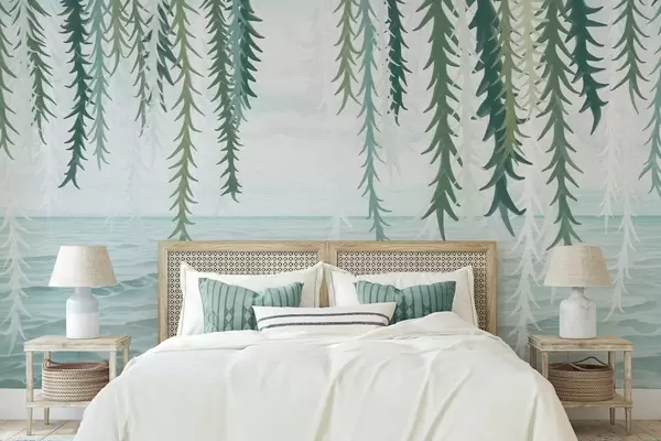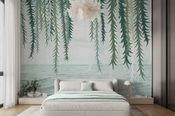 Fotomurales Delicadas enredaderas colgando sobre el agua, estilo acuarela. Nr. w04830