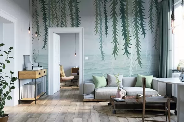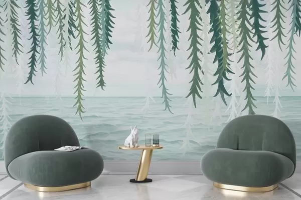 Fotomurales Delicadas enredaderas colgando sobre el agua, estilo acuarela. Nr. w04830