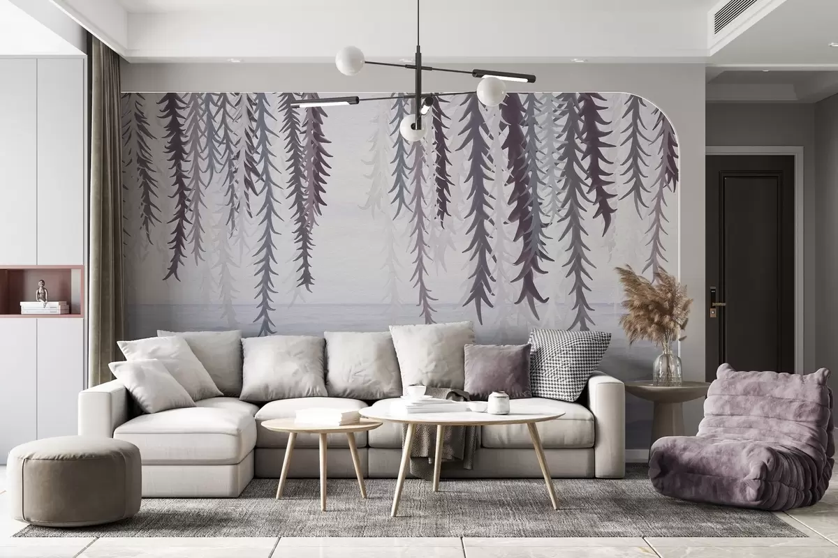 Fotomurales Delicadas enredaderas colgando sobre el agua, estilo acuarela. Nr. w04830v1