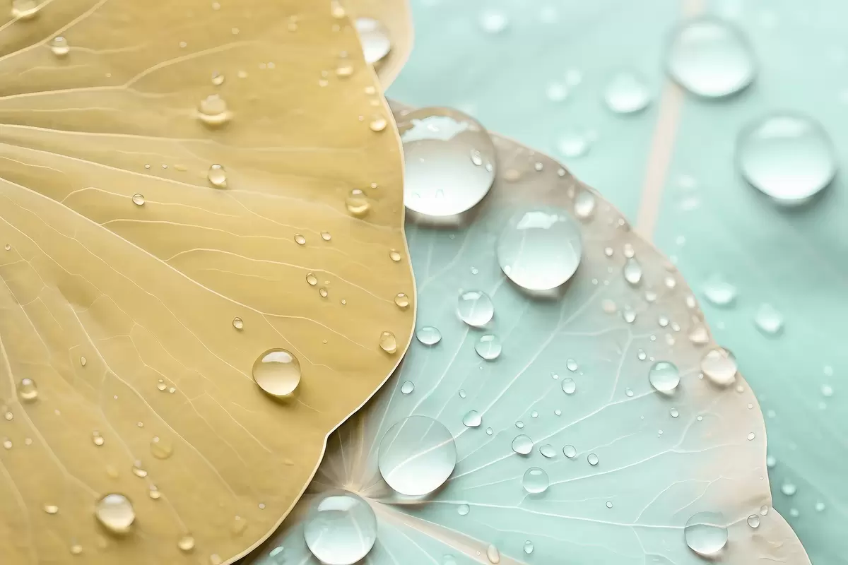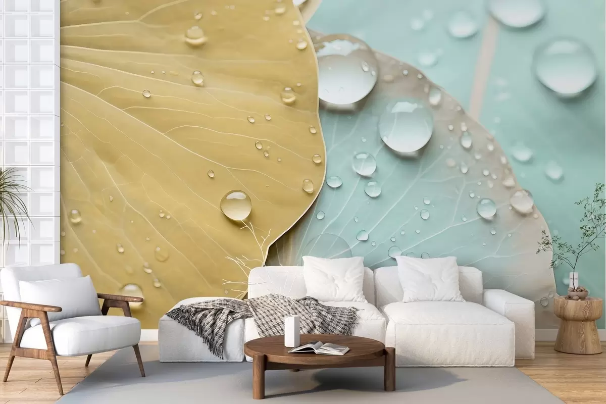Fotomurales Gotas de agua sobre hojas, acuarela macro Nr. w04838v1