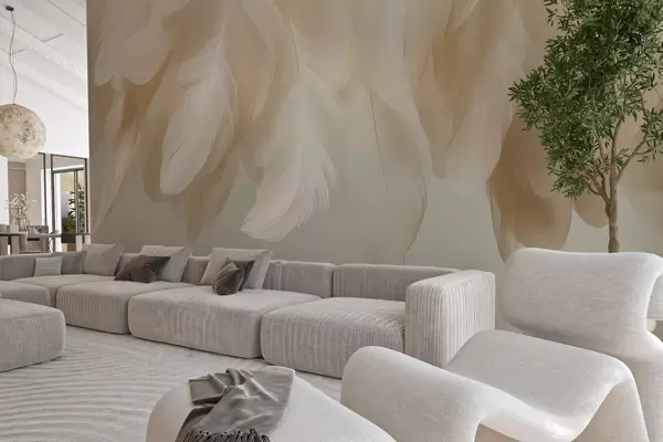 Fotomurales Plumas colgantes exuberantes y delicadas en tonos relajantes. Nr. w04842