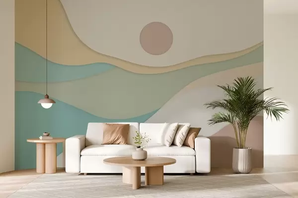 Fotomurales Abstracción minimalista con formas suaves y onduladas que recuerdan paisajes fluidos y dunas. Nr. w04874