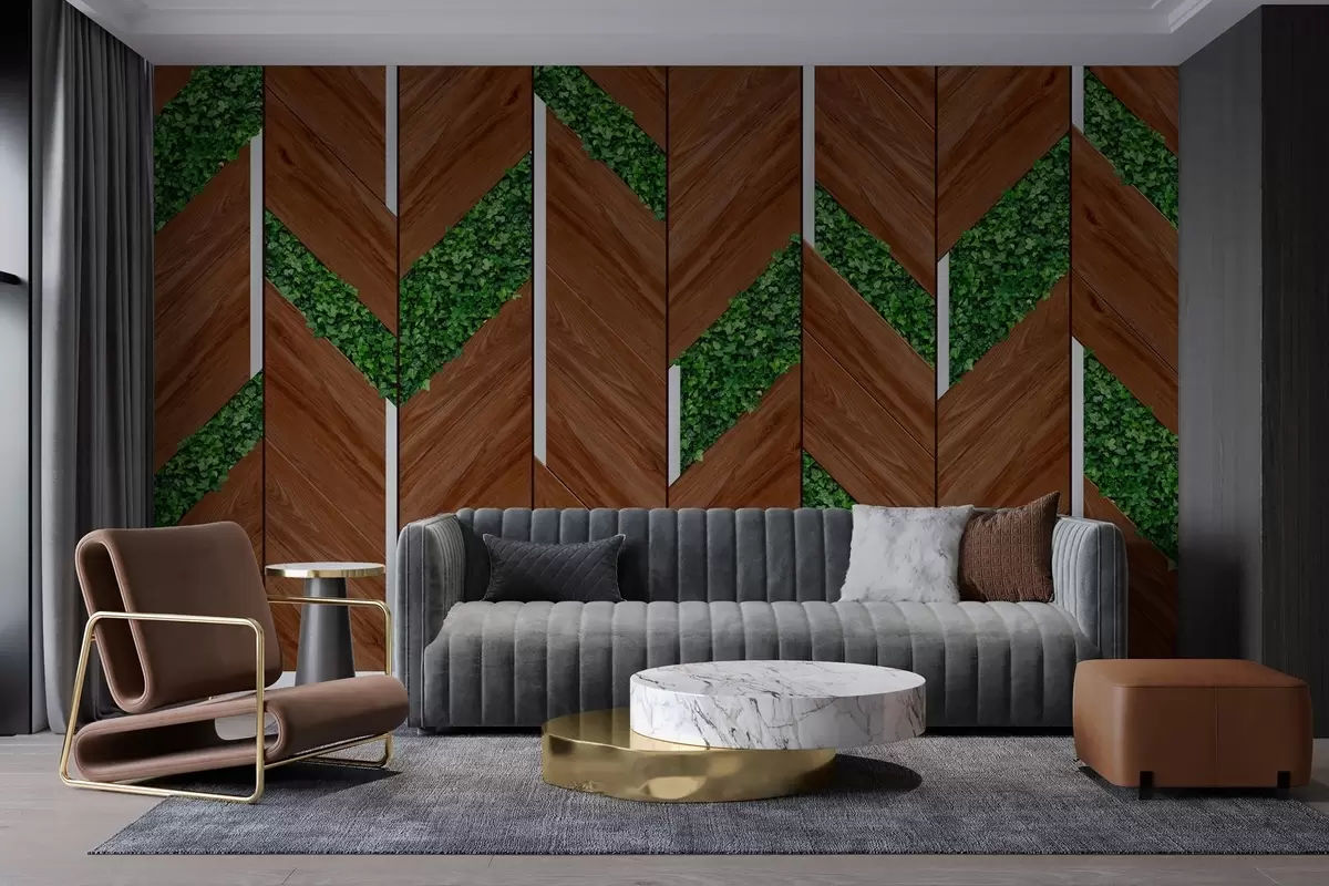 Fotomurales imitación de paneles de madera oscura con inserciones vegetales Nr. w04875v1