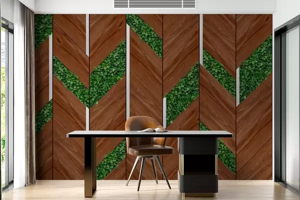 Fotomurales imitación de paneles de madera oscura con inserciones vegetales Nr. w04875v1