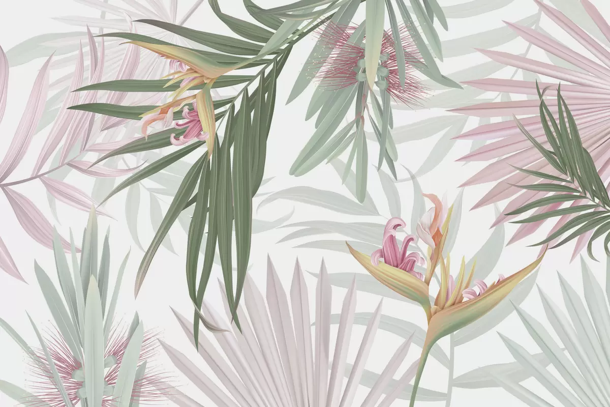 Fotomurales Strelitzia entre el follaje de las palmeras Nr. w04896v2