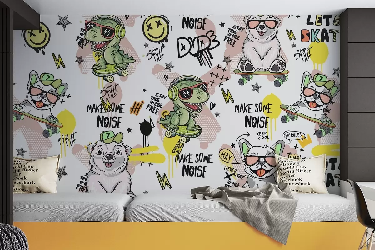 Se puede limpiar suavemente con una esponja suave. Los murales de pared con recubrimiento de barniz pueden limpiarse con agua.