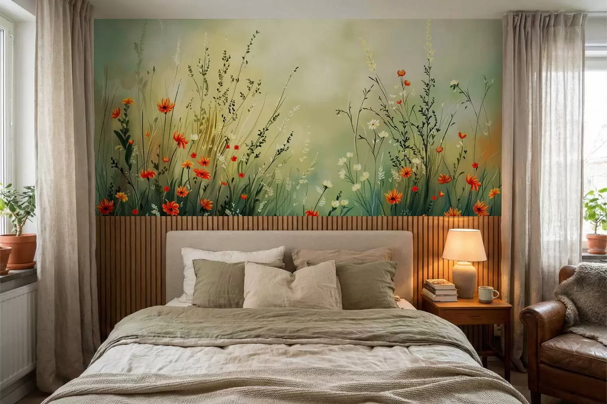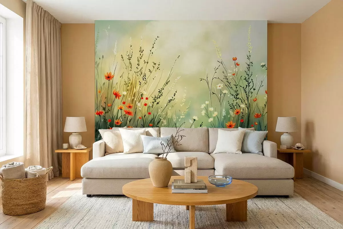 Fotomurales Flores y hierbas del prado en un estilo pictórico suave. Nr. w05015