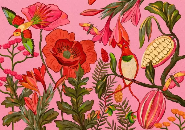 Fotomurales Flores y pájaros decorativos sobre fondo beige Nr. w05036
