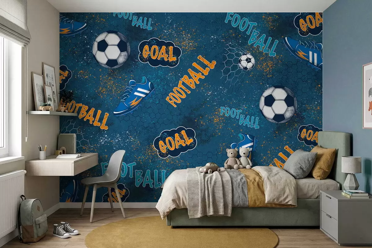 Fotomurales Diseño infantil con pelotas, zapatillas y palabras deportivas. Nr. w05037