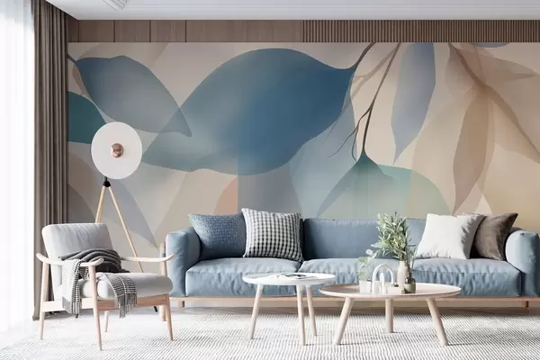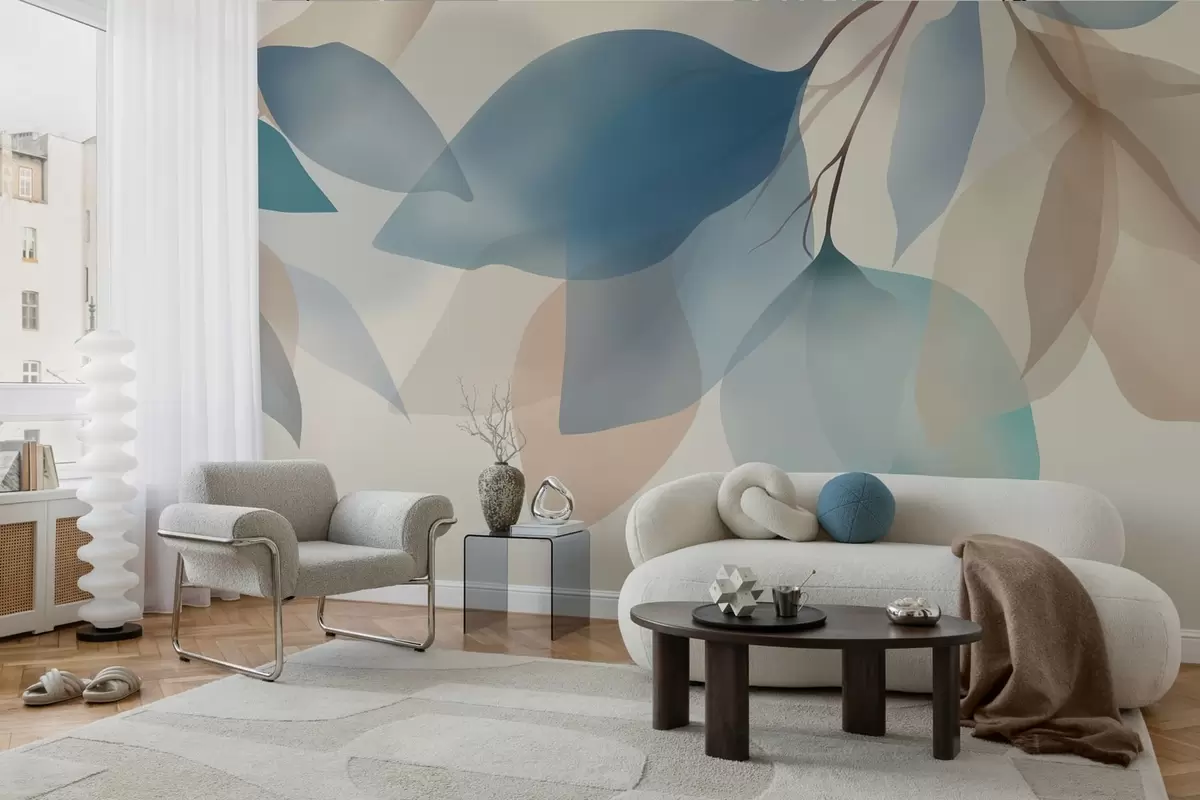 Fotomurales elegantes hojas semitransparentes en tonos azules y beige Nr. w05060