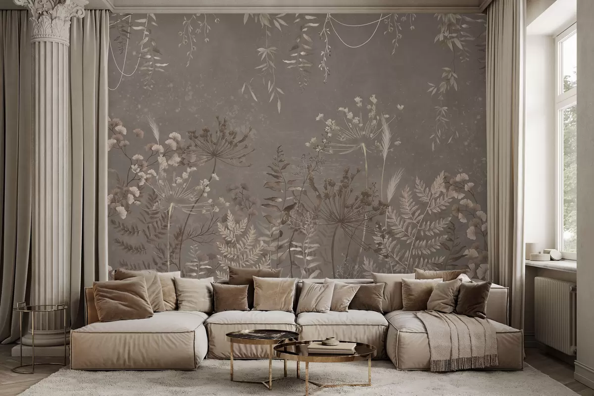 Fotomurales Diseño botánico ligero con flores y hojas. Nr. w05092v1