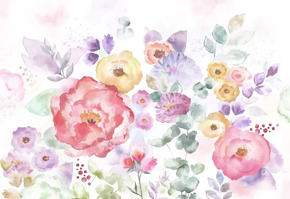 Fotomurales Flores en acuarela pastel sobre fondo claro Nr. w05093v1