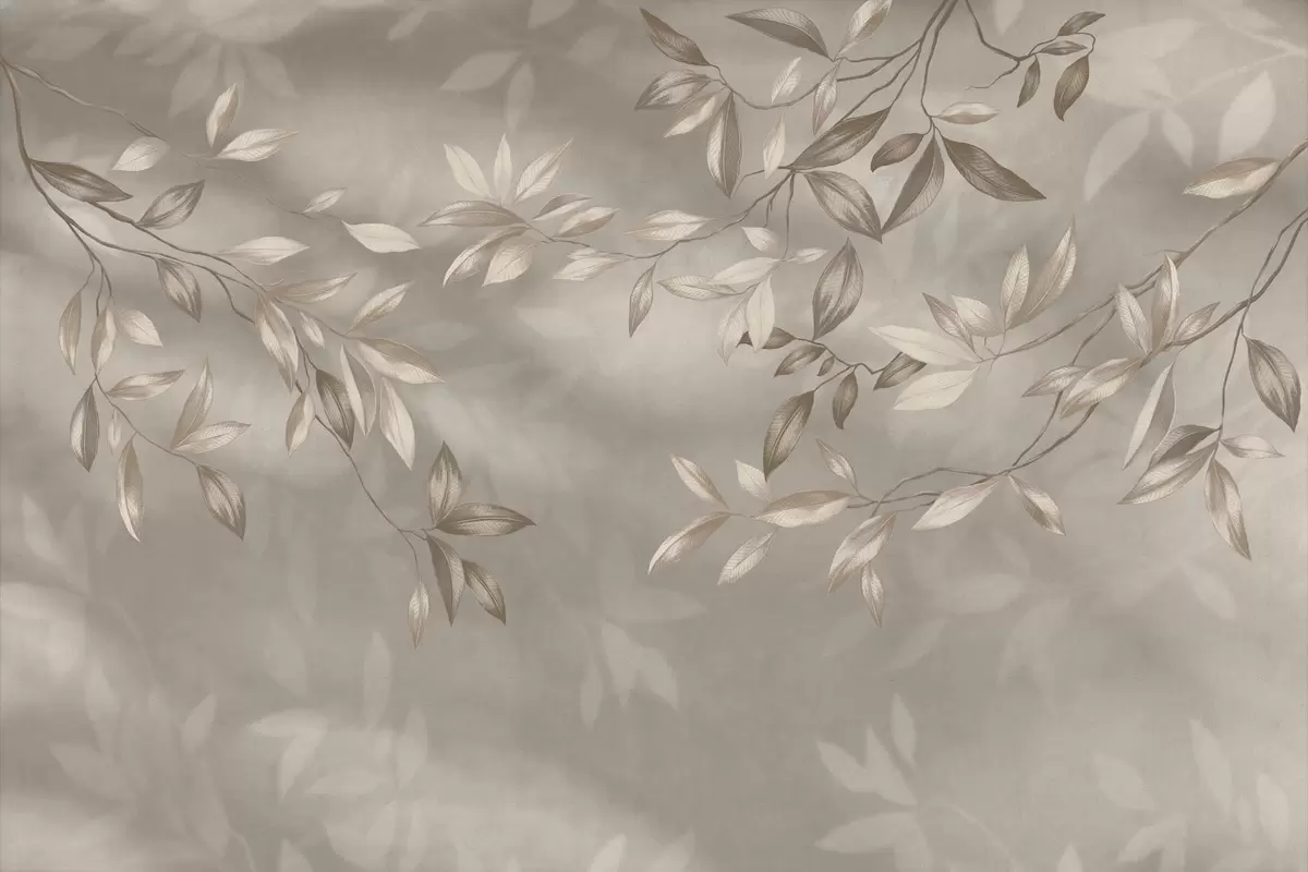 Fotomurales Elegantes ramas frondosas en tonos beige sobre un fondo claro. Nr. w05113