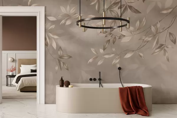 Fotomurales Elegantes ramas frondosas en tonos beige sobre un fondo claro. Nr. w05113
