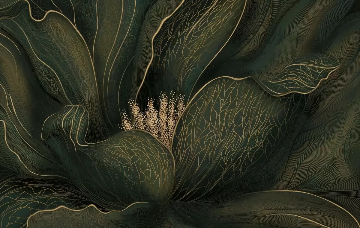 Fotomurales Flor abstracta de color verde oscuro con detalles de líneas finas Nr. w05119v1