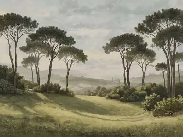 Fotomurales Paisaje con árboles bajo la cálida luz del atardecer Nr. w05122